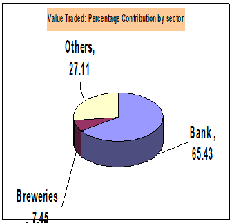 The Banking sector was the most active in value traded as the stocks worth N2,261.26 million for a 65.43 percent of the aggregate traded value for the day. The Breweries sector (N257.57 million) followed, representing 7.45 percent of the overall value traded.