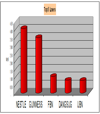 On the losers’ chart, Nestle Plc lead the table for the day as the company share price declined by N4.06 or 2.33 percent to close the market at N170.00 per share, from it opening price of N174.06. Followed on the Chart was Guinness Plc that lost N3.50 or 2.59 percent to close the day at N29.04 per share.