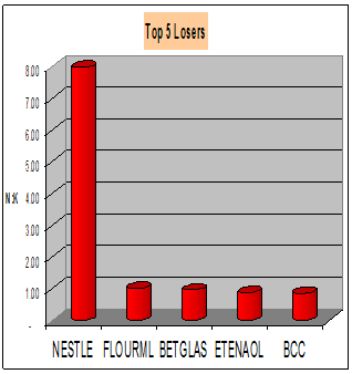 On the losers’ chart, Nestle Plc lead the table for the day as the company share price declined by N7.98 or 3.89 percent to close the market at N197.02 per share, from it opening price of N205.00. Followed on the Chart was Flourmills Nig Plc that lost N1.02 or 4.97 percent to close the day at N19.50 per share.