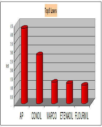 On the losers’ chart, AP Plc lead the table for the day as the company share price declined by N4.03 or 4.99 percent to close the market at N76.75 per share, from it opening price of N80.78. Followed on the Chart was Oando Plc that lost N2.35 or 2.62 percent to close the day at N87.51 per share.