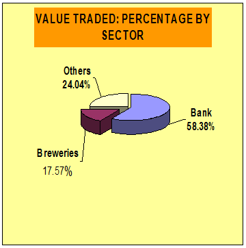 The Banking sector was the most active in value traded as the stocks worth N1,111.98 million for a 58.38 percent of the aggregate traded value for the day. The Breweries sector (N334.72 million) followed, representing 17.57 percent of the overall value traded.