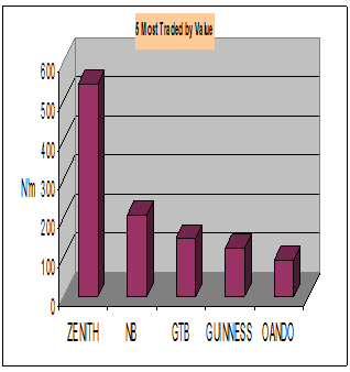 Analysis on individual company basis showed that Zenith Bank Plc led the highest trading by value at N543.96 million today. The figure controlled 48.92 percent of total traded value in the Banking sector and 28.56 percent of the overall value traded for the whole market. Nigeria Breweries Plc (N207.67 million) was the second highest.