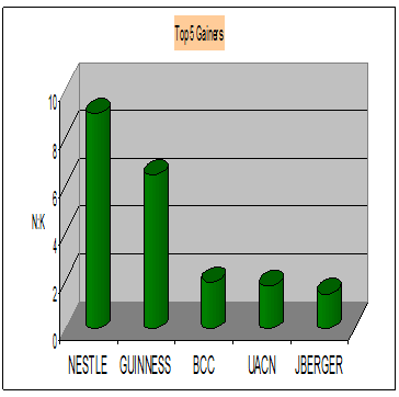 Nestle Plc lead the top gainers list again as the stock added N9.01 or 4.74 percent to its share price to close the market at N199.00 from its opening price of N189.99. Guinness Plc came second on the list, having gained N6.45 or 5.00 percent as it opened and closed the day at N129.00 and N135.45 respectively.