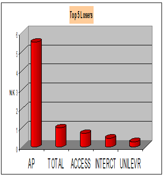 On the losers’ chart, Total Plc lead the table for the day as the company share price declined by N3.75 or 2.13 percent to close the market at N172.25 per share, from it opening price of N176.00. Followed on the Chart was Conoil Plc that lost N3.07 or 4.99 percent to close the day at N58.43 per share.