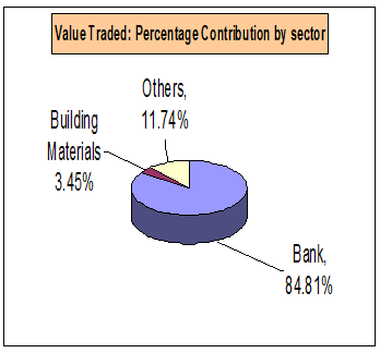 The Banking sector was the most active in value traded as the stocks worth N3,441.16 million for a 84.81 percent of the aggregate traded value for the day. The Building sector (N140.09 million) followed, representing 3.45 percent of the overall value traded.