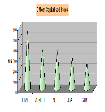 First Bank of Nigeria Plc is the highest capitalized stock at N556.32 billion today. This was followed by Zenith Bank Plc with N376.76 billion. Nigerian Breweries Plc N374.35 billion, UBA Plc with N306.43 billion and Guaranty Trust Bank Plc N264.41 billion to maintained the third, fourth and fifth positions respectively.