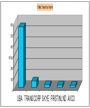 United Bank for Africa Plc emerges first as the most patronized stock for the day. Investors traded 554.70 million ordinary shares to controlled 81.25 percent of the aggregate volume traded in the Banking sector and 65.09 percent of the entire market. Transcorp Plc (57.67million ordinary shares) emerged second position on the list.